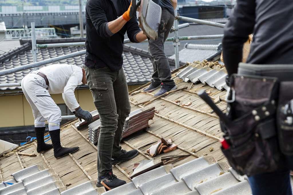 傷んだ屋根瓦や下地などを全て撤去して、下地から新しく葺き替えを行います。
